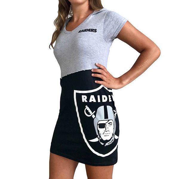 Women S Refried Tees Gray Black Oakland Raiders Hooded Mini Dress